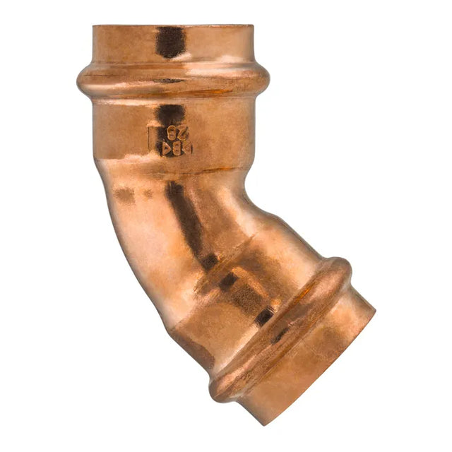 Ce coude à sertir en cuivre à 45° permet d’effectuer des déviations angulaires précises dans les réseaux de plomberie sanitaire et de chauffage.