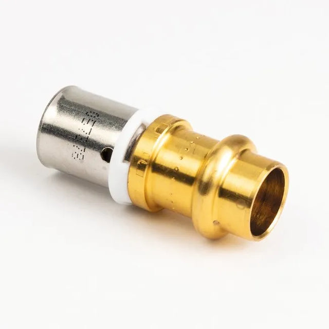 Le raccord passerelle droit cuivre multicouche à sertir Ø 16 mm est un élément de liaison permettant de connecter directement un tube multicouche à un tube cuivre rigide, facilitant ainsi les transitions entre ces deux types de tuyauterie. Ce raccord droit assure une connexion étanche et fiable grâce au système de sertissage professionnel.